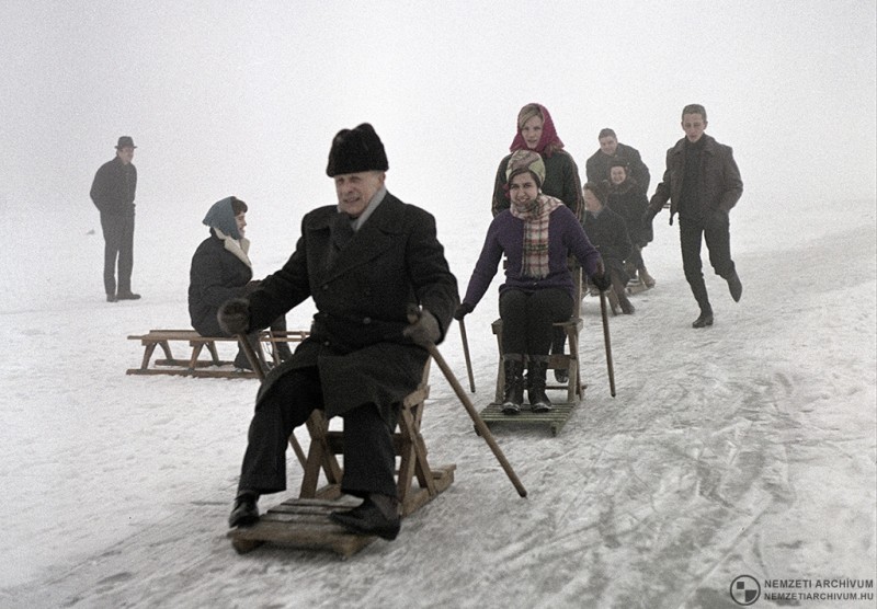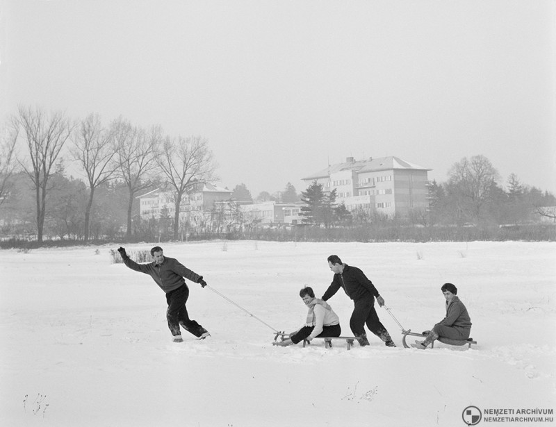 Szánkózás Szegeden 1960-ban (Fotó: Nemzeti Fotótár)
