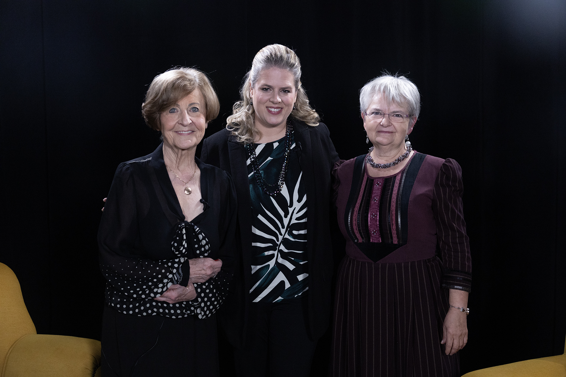 Lélekutakon Bagdy Emőkével podcast felvételén Bagdy Emőke, Uzsalyné Pécsi Rita és Kisfaludy Nóra (Fotó: MTVA / Horváth Péter Gyula)